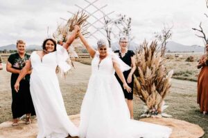 Crystal + Latoya's big day at The Creek in the Whitsundays? Simply unforgettable! 🌟 With the sun shining bright and two stunning gowns that left everyone in awe, they joyfully tied the knot. The excitement peaked when not one, but TWO bouquets took flight, doubling the fun and the lucky catches! Surrounded by their nearest and dearest, it was a day bursting with love, laughter, and memories to cherish forever. Here's to Crystal + Latoya and the amazing journey they've just begun! 🥂💍
