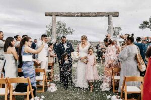 Shana and Zane tied the knot in a heartwarming ceremony at The Creek, Whitsundays, filled with laughter, love, and unexpected moments. Surrounded by close family and friends, and with their children playing a big part in the festivities, the day was highlighted by a hilarious dress reveal prank that set the tone for a joyful celebration. Guests enjoyed heartfelt conversations over long tables, feasted under the stars, and danced by the warmth of bonfires into the night.